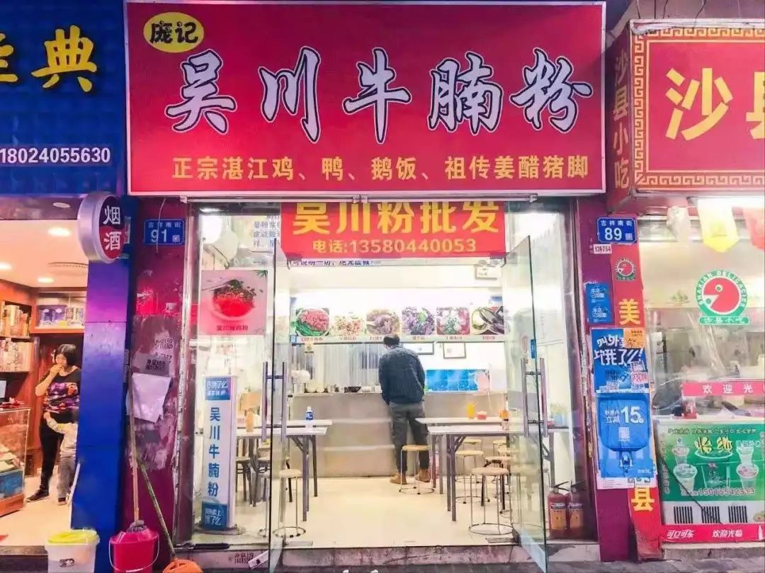 离广州三百多公里的吴川属粤西地区,这里的人们朴实热情,来自吴川的庞氏夫妇经营着一家庞记吴川牛腩粉店,尽管已成为了洛溪人气很高的地方美食店,店面的装修却非常低调。