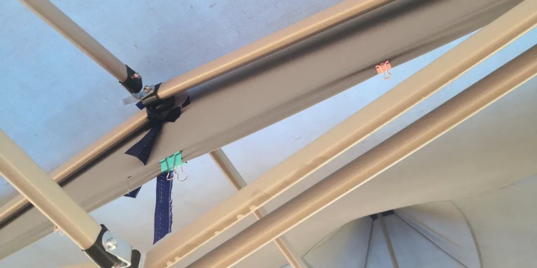 由于22日广州普降大雨,搭建好的帐篷与帐篷之间出现漏雨情况,保安队长彭金辉想出了办法——组织保安用凤尾夹一个个帐篷卷一下边夹起来,成功解决了整个区域漏水的问题。