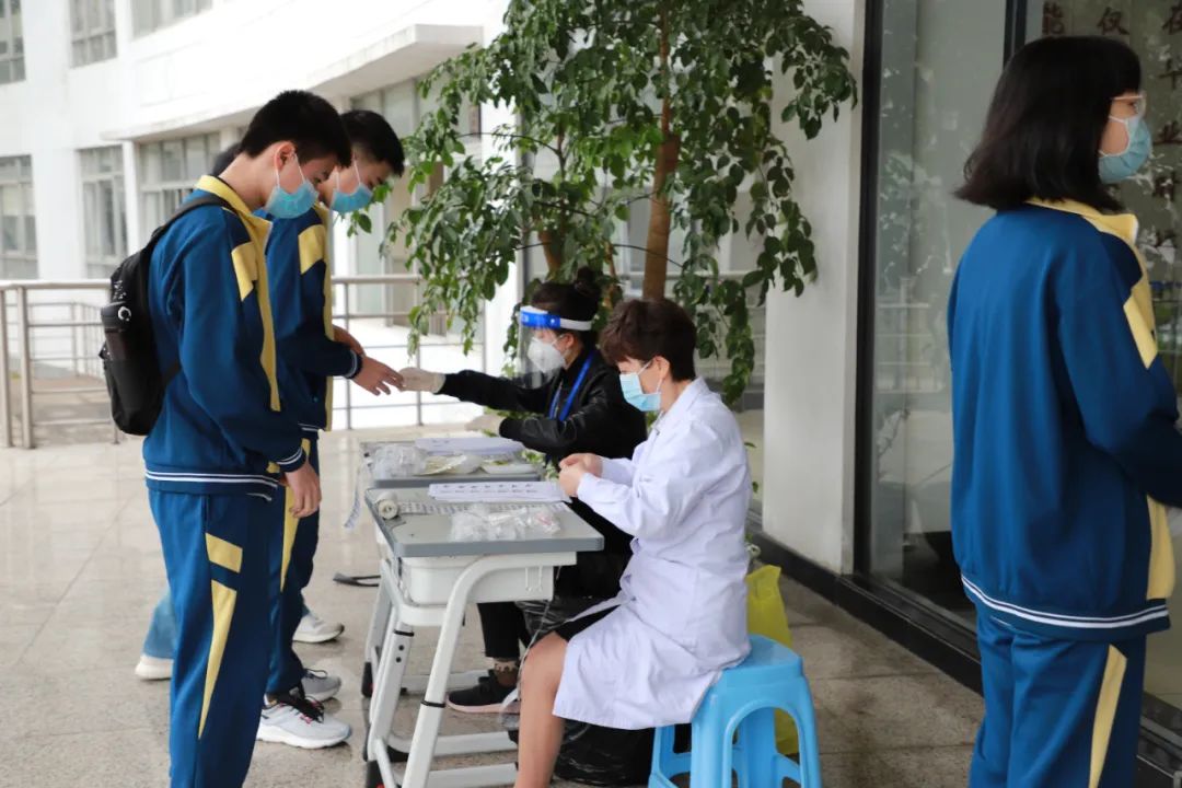 根据黄埔区有关疫情防控工作部署,及《黄埔区教育局关于组织中学毕业班教职工、学生做好核酸检测工作的通知》要求,广州市玉岩中学联合广州开发区医院对本校初三、高三年级教职工及学生等于2020年4月23日进行核酸检测。玉岩中学准备周密,现场指示明确,过程清晰、安全、高效,为4月27日正式开学守好了第一道防线。