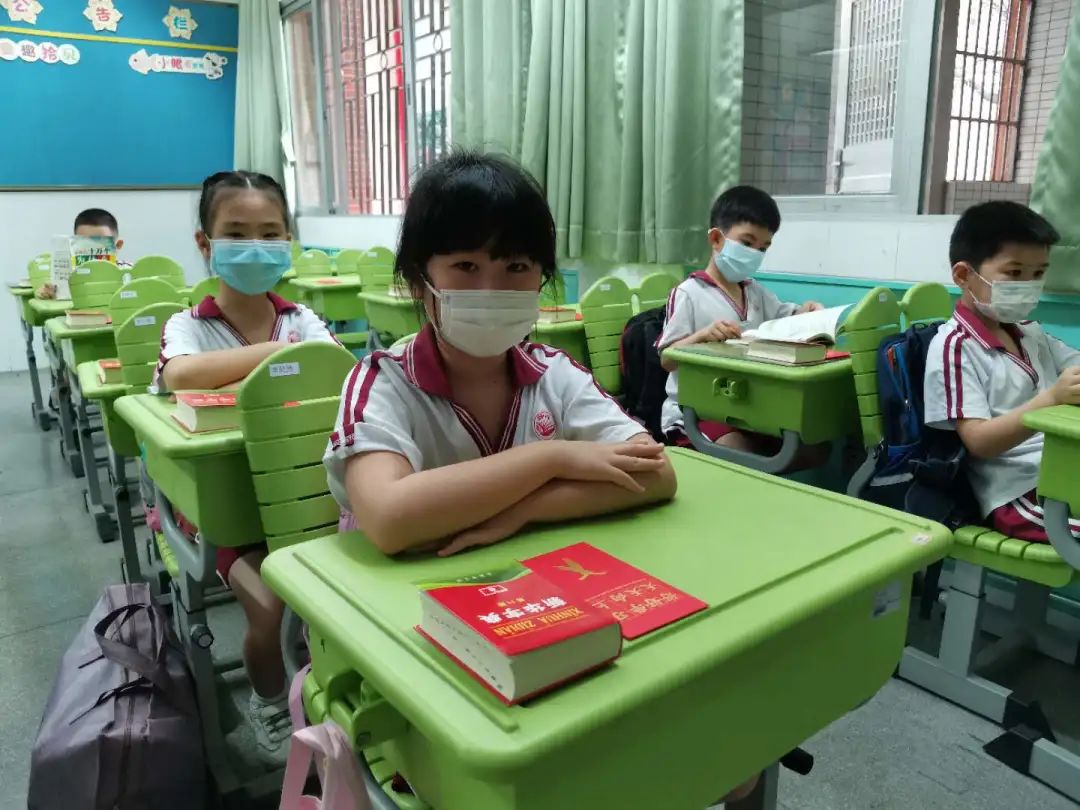 5月25日,广州一、二、三年级约60万名小学生返校复课。当天一早,小e来到协和小学,见证小萌娃们复课返校第一天的表现。