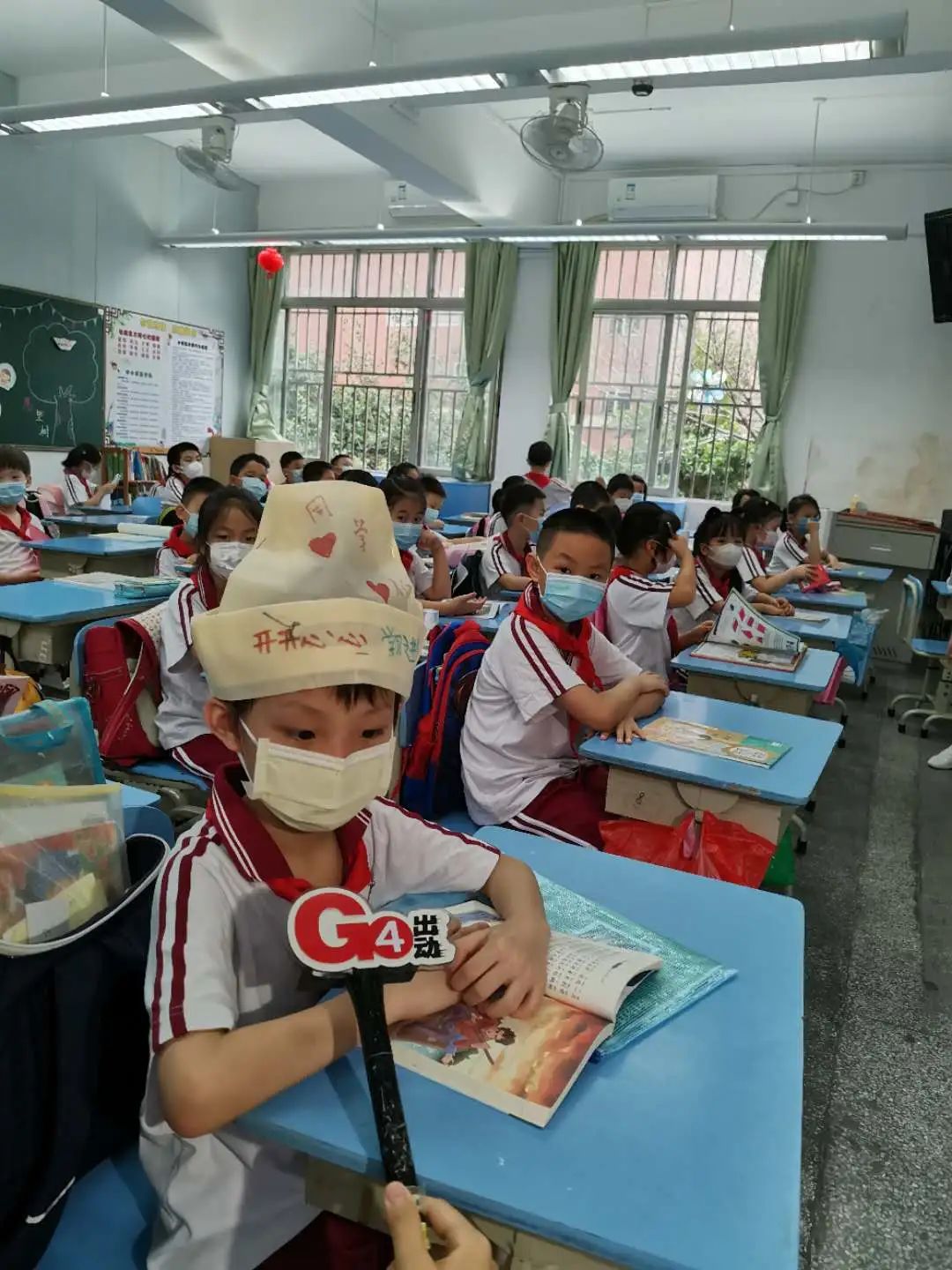 不仅是各班级开学具有满满的仪式感,还有小朋友用自己别样的“仪式感”来迎接新学期。二年二班的陈思睿小朋友今天就特意戴着自己手工制作的卡通黄色帽子前来上学。“一想到回学校我就很高兴,平时我也爱画画,所以就在星期天的时候自己做了一顶帽子。我有好朋友因为生病还没来上学,所以我在帽子上写了‘好久不见,身体健康’,很想念他,希望他能早点恢复健康回到学校。”陈思睿小朋友说。
