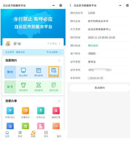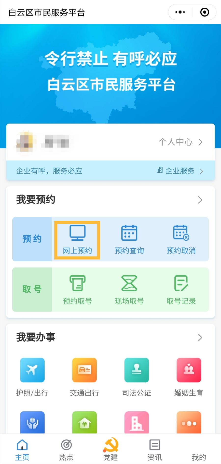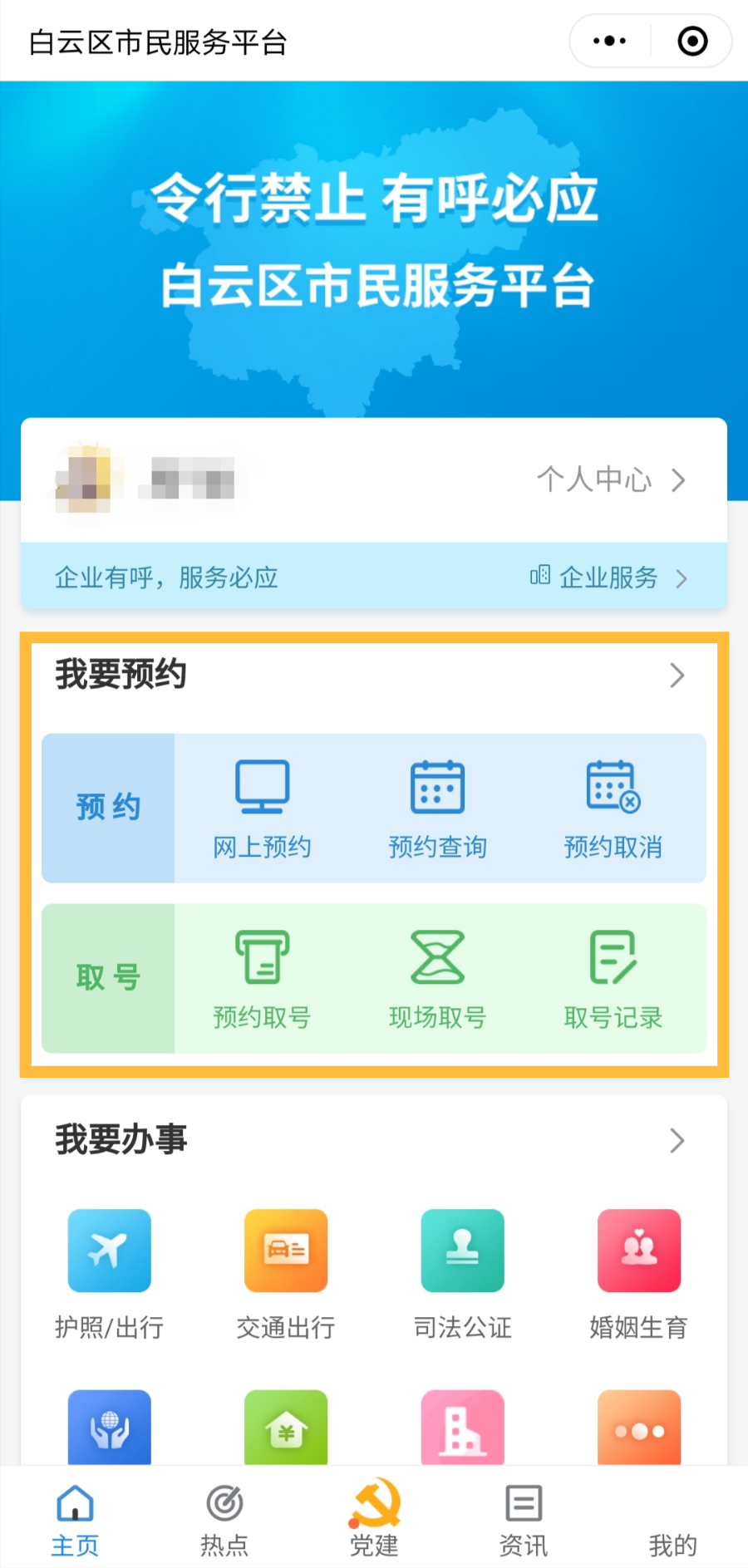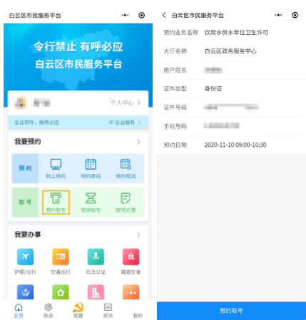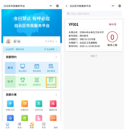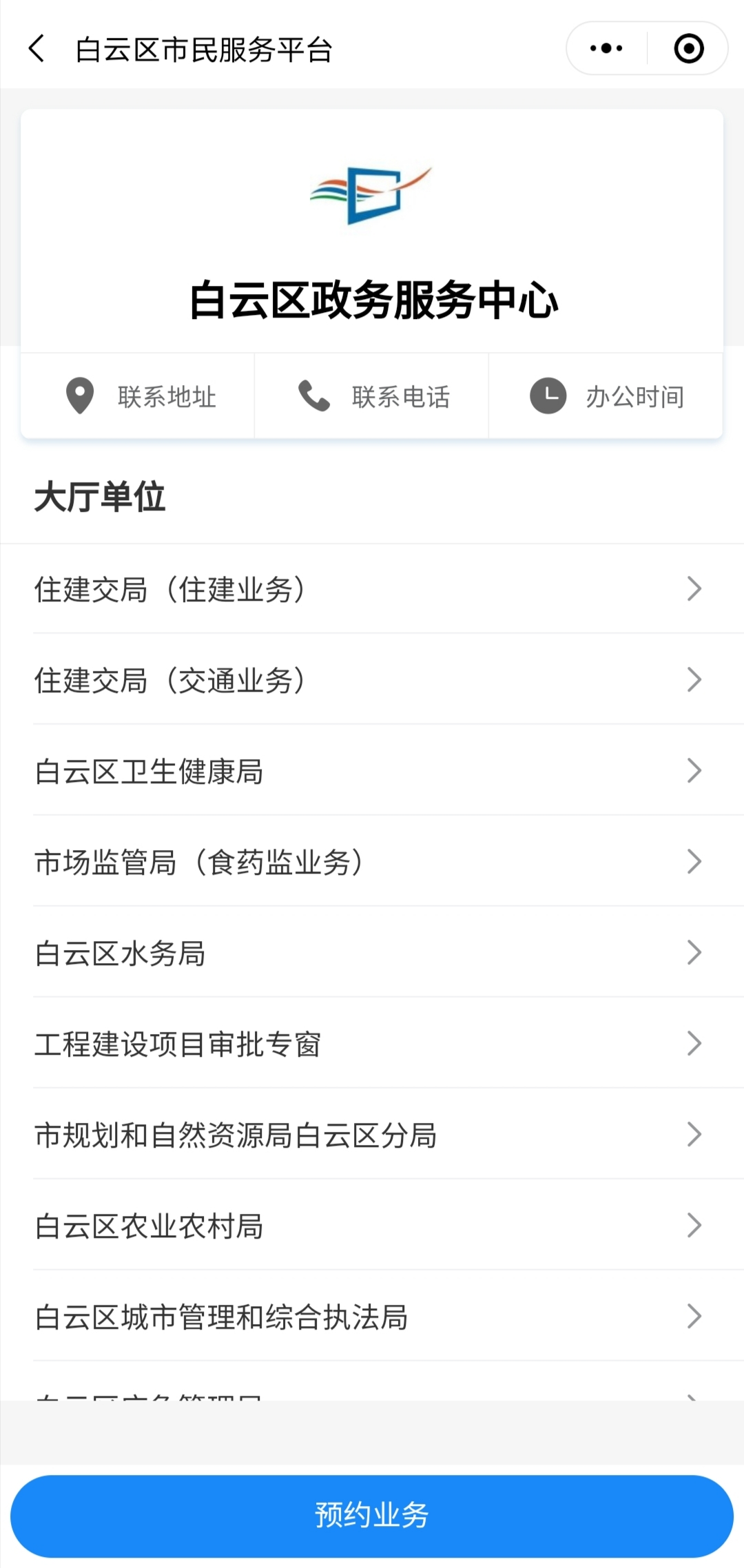 (温馨提示:目前小程序仅支持白云区政务服务中心的线上预约取号服务)