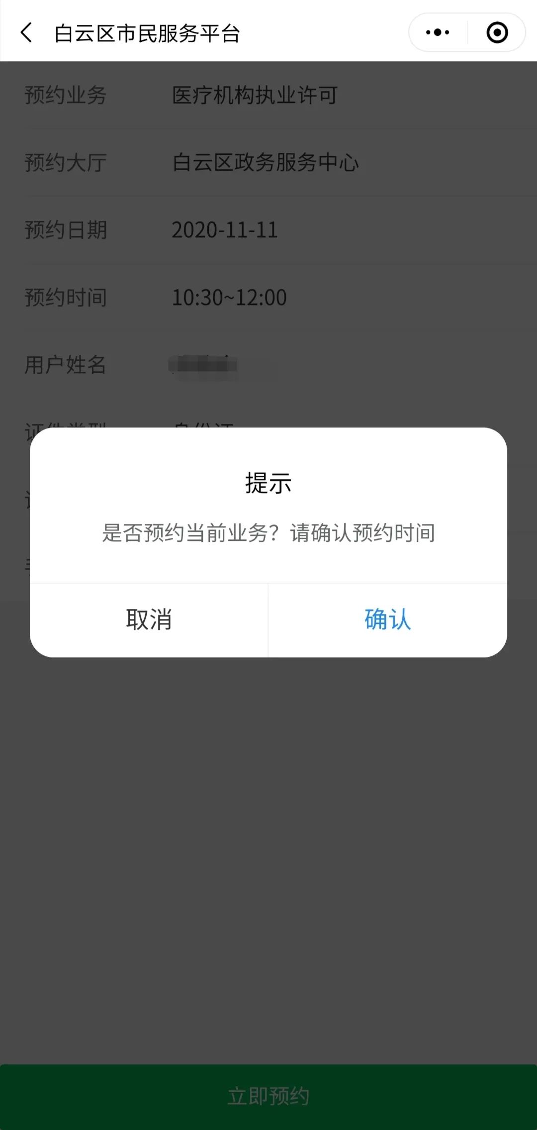 点击需要办理的服务事项后,选择预约时间,然后点击“立即预约”,就可以成功预约啦!