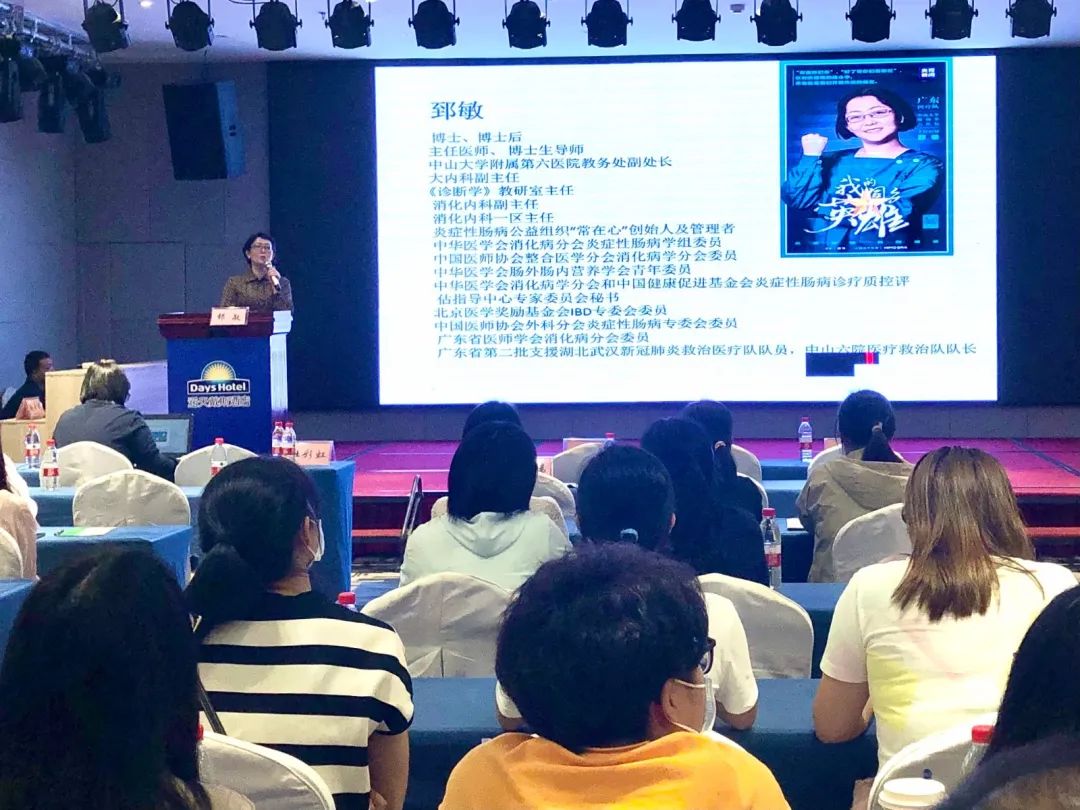 随后上场的专家是广东省第二批援助武汉医疗队队员、中山大学附属第六医院教务处副处长、消化内科主任郅敏。她以“新型冠状病毒肺炎的诊断和治疗”为题,通过对新冠肺炎诊疗方案最新版的介绍,从新冠肺炎的流行病学特征、病理、临床表现、实验室检查、影像学表现、诊断标准、分型治疗等方面作了详细的介绍,并将自己在支援武汉时发生的一些感人的抗疫故事与大家分享,使学员们更加全面、深入了解了新冠肺炎的诊断与治疗,防止误诊漏诊的发生。