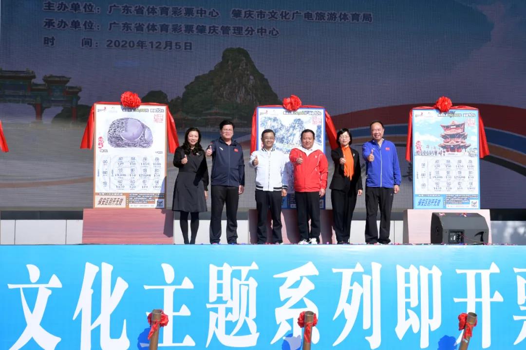 12月5日上午,“中国砚都”肇庆文化主题系列即开票上市仪式在肇庆市牌坊广场顺利举行。省体育局二级巡视员王卫东、肇庆市委常委、常务副市长李奔等领导嘉宾出席了上市仪式,并为“中国砚都”系列即开票“揭票”,由此该票在全省21个地级市近1.5万个体彩销售店同步上市销售。同时,广东体彩“千年砚都 奖金翻番”百万元赠票正式启动,即日起刮中“中国砚都”指定奖级,即可获赠同等金额即开票。