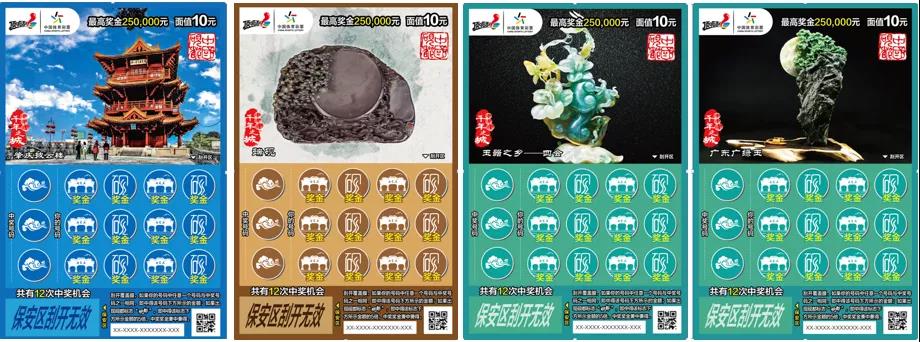 “山水之城”即开票选择肇庆的七星岩、鼎湖山、德庆龙母庙、封开大斑石作为票面元素,重点展示秀美风光。最高奖金25万元。