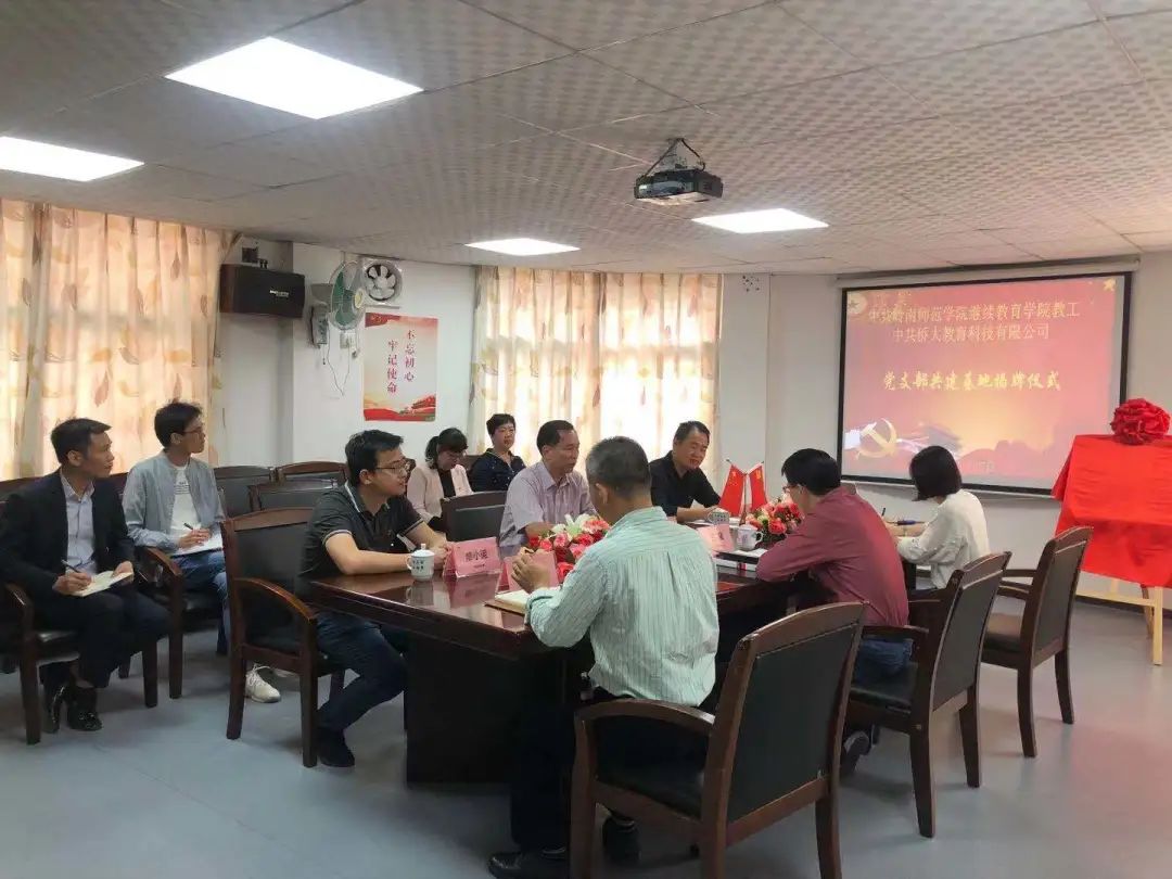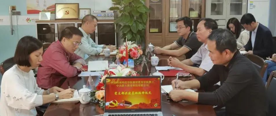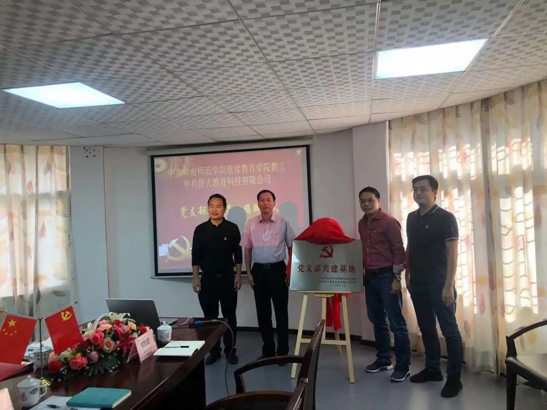 为加强基层党建工作,实现校地合作、校内外互动、优势互补、协作共赢的目标,建设街辖内的“两新”组织侨大教育科技有限公司党支部与岭南师范学院继续教育学院党支部携手共建,在侨大教育科技有限公司总部举行党支部共建基地签约揭牌仪式。
