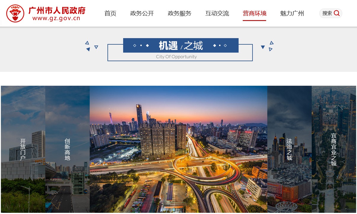 为向海内外宣传推介广州营商环境,推动现代化国际化营商环境出新出彩,广州市政府门户网站从2019年11月开始,对照国内外最佳实践,打造了以企业全生命周期为主线的“优化营商环境政策集成”专窗(http://www.gz.gov.cn/ysgz/index.html),并开通中英文版,集合广州优化营商环境的相关政策文件和服务。