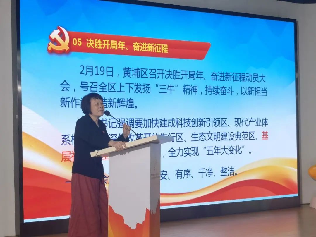 活动的最后,云埔街人大工委主任钟焕珍为在场党员讲授了一场精彩的主题党课。党课上,钟焕珍向在场党员传达了习总书记在春节团拜会上的重要讲话、学习党史动员大会上的重要讲话以及黄埔区委书记周亚伟在“决胜开局年、奋进新征程”的重要讲话精神,号召大家要围绕火村中心工作,永葆“闯”的精神、“创 ”的劲头、“干”的作风 ,实现火村翻天覆地大变化,为科学城五年大变化贡献积极力量。