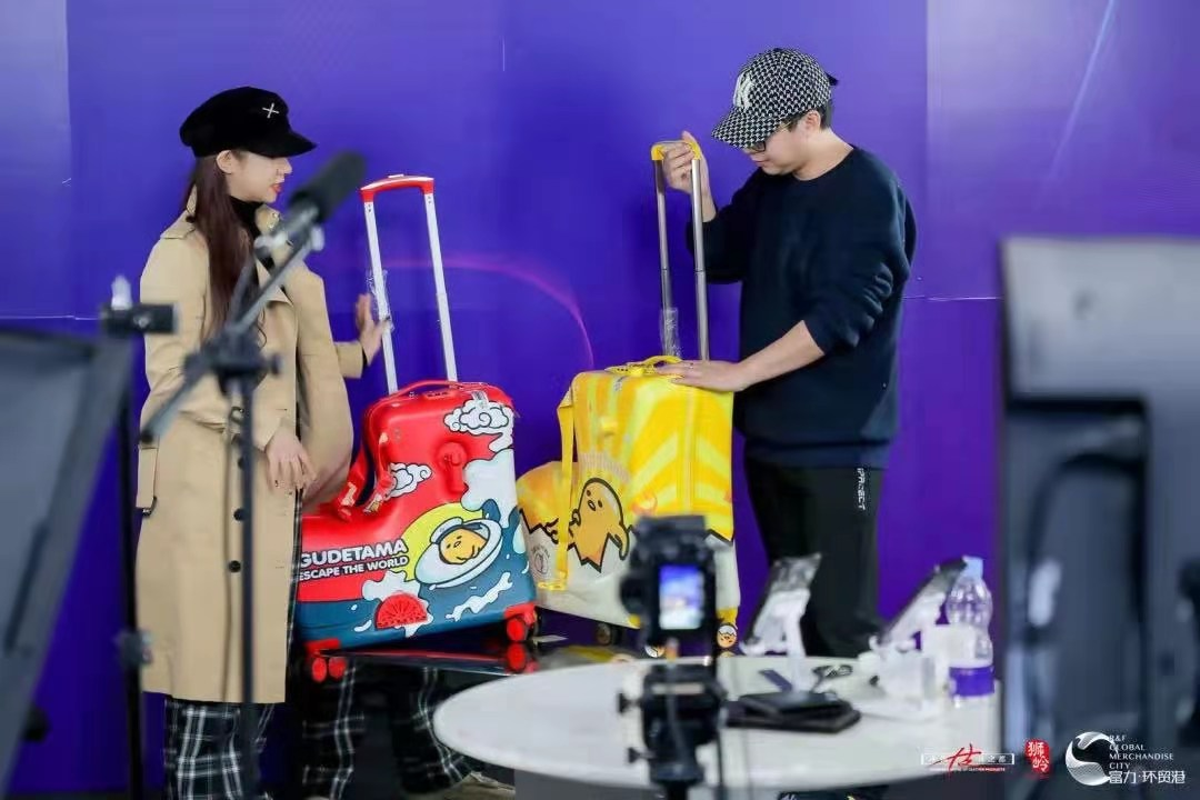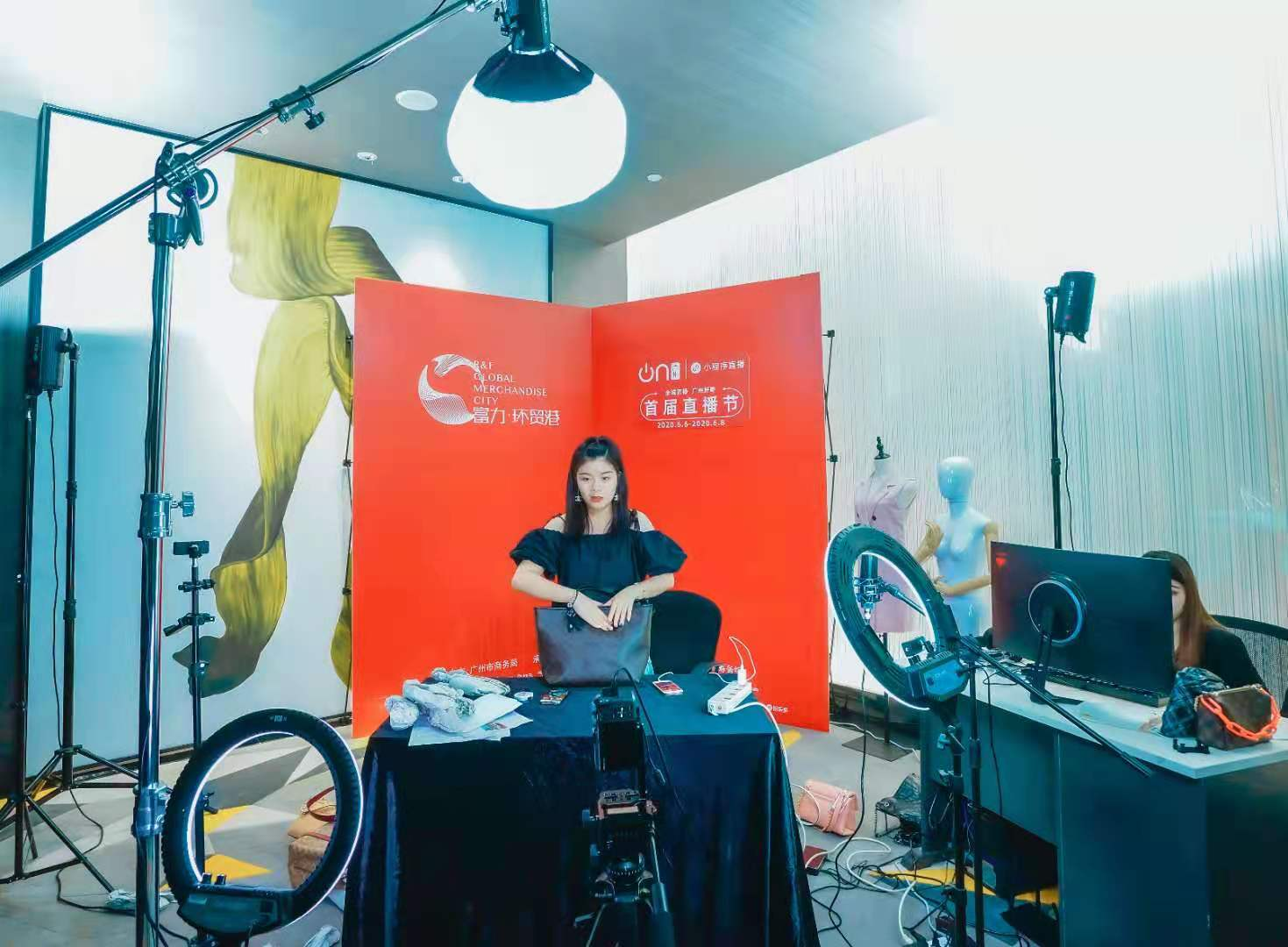 (富力环贸港直播基地直播间场景。)