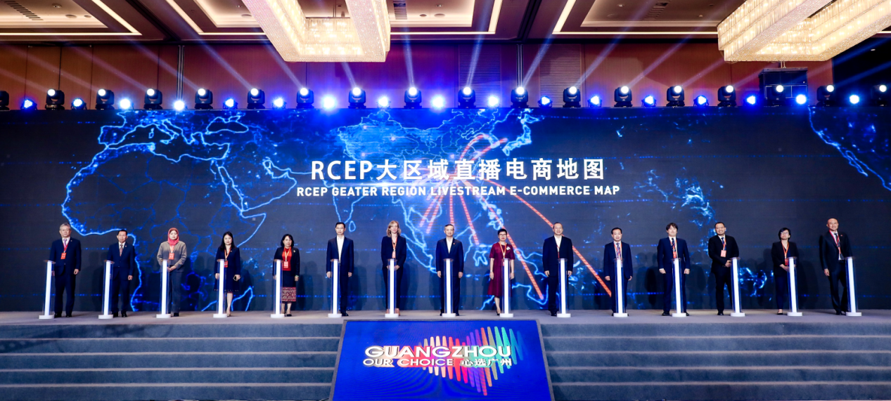 在2021第七届中国广州国际投资年会上,广州市领导和RCEP成员国代表共同点亮RCEP大区域直播电商地图。广州将把直播电商发展、数字商务转型经验,借助跨境电商等渠道,复制到RCEP各成员国,推广到“一带一路”国家和地区,与全球企业一道,共享数字化成果,共创数字化时代。