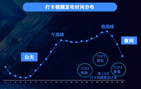 广州的夜生活同样充满生活气息。在一天中,晚8点是打卡高峰,吃喝玩乐、游玩、购物也是热门的打卡类别。