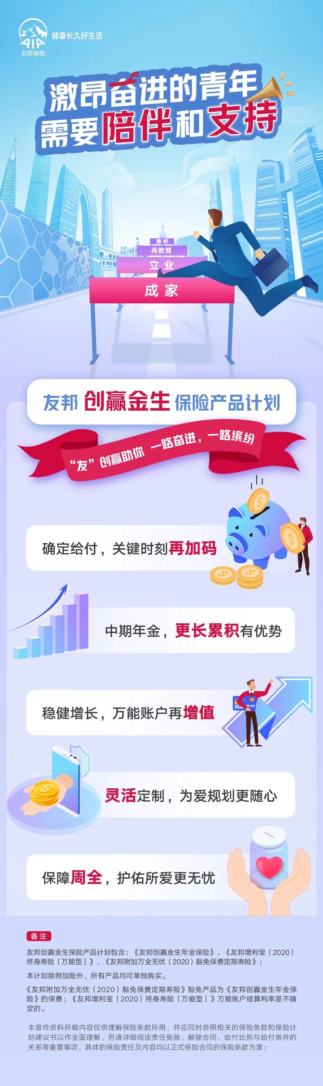 近日,友邦人寿保险有限公司(以下简称“友邦人寿”)推出《创赢金生保险产品计划》,针对儿童及青年客户群体提供财富管理解决方案,助力客户在成长和奋斗的关键人生阶段为自己与家庭稳步积累财富,从容应对未来的风险和挑战,无忧尽享“健康长久好生活”。