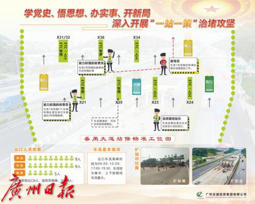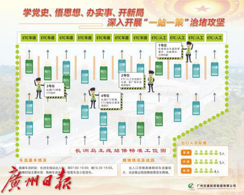 记者在长洲岛收费站以及番禺大道出口收费站均看到一块图文并茂的指示牌,原来是根据收费站世纪情况而定的保畅精准工位图。 据悉,广州交投集团按照“一站一策”原则对管辖路段全线90个收费站“问诊开方”,制定“一站一策”保畅手册。保畅手册结合收费站出、入口每小时车流数据,精准分析了各收费站的出入口早晚高峰时间段车流特征,深入研究收费站车道布局、各条车道的通行能力,系统梳理各站点人员、设备及物资等情况,制定了精准保畅措施,为收费站疏堵提供了切实可行的操作指引。同时,管辖路段编制了《交通保畅作战图》《应急处理力量作战图》《应急联动资源作战图》,并要求全线应急处置人员熟悉掌握,落实责任,确保有序高效应对突发事件。据广州交投集团相关负责人介绍,在实施“一站一策”管理的基础上,持续优化ETC车道技术,不断提升ETC车道性能和感应速度,各站点专用ETC车道平均通行成功率全部达到99.7%以上。通过开展“一站一策”治堵攻坚,各收费站点的交通拥堵现象得到明显改善,群众出行的满意度明显提高。记者了解到,广州交投集团通过创新管理模式,深入开展高速公路收费站“一站一策”精准治堵,全线收费站拥堵时长下降60%,基本消灭拥堵“黑点”。