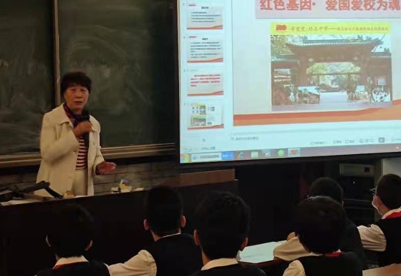 在培正建校132周年之际,培正中学组织学生学党史、忆英雄,传承红蓝精神。1970年毕业的刚社校友肖敏宁老师介绍了培正中学国文老师陈黄光烈士、抗日战争时期牺牲的周竹君、吴彼得、林英浩烈士的英雄事迹。