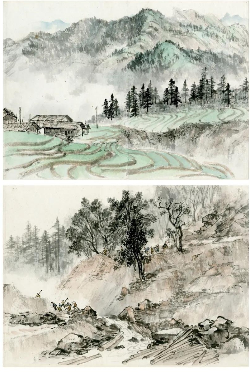 下篇则收录云水树石、花卉翎毛、生产建设、画稿草图四部分,凸显其在绘画创作过程中专门针对某些主题类型的探索研究,这也是他艺术创作的特色所在。同时配合完成的创作作品,附上先生谈艺心得或笔记,以益于读者深入了解。
