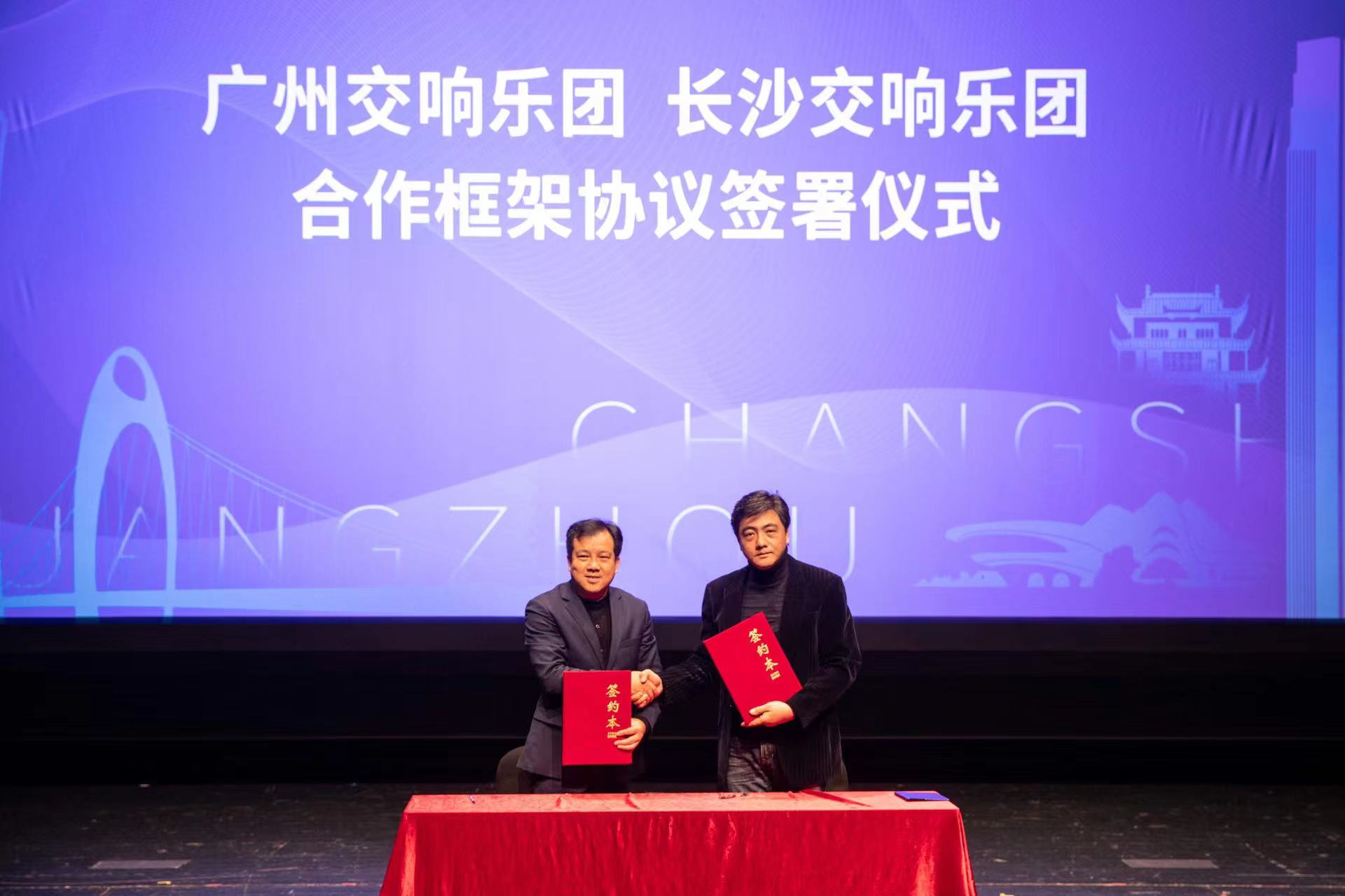 在推介会上,广东星海演艺集团党委副书记、管委会副主任、广州交响乐团团长陈擎与长沙交响乐团团长、董事长王智分别代表广州交响乐团、长沙交响乐团,签署战略合作协议。根据协议,双方将在演出交流、节目推荐、人才互动、作品共享、艺术教育等多个方面开展合作。