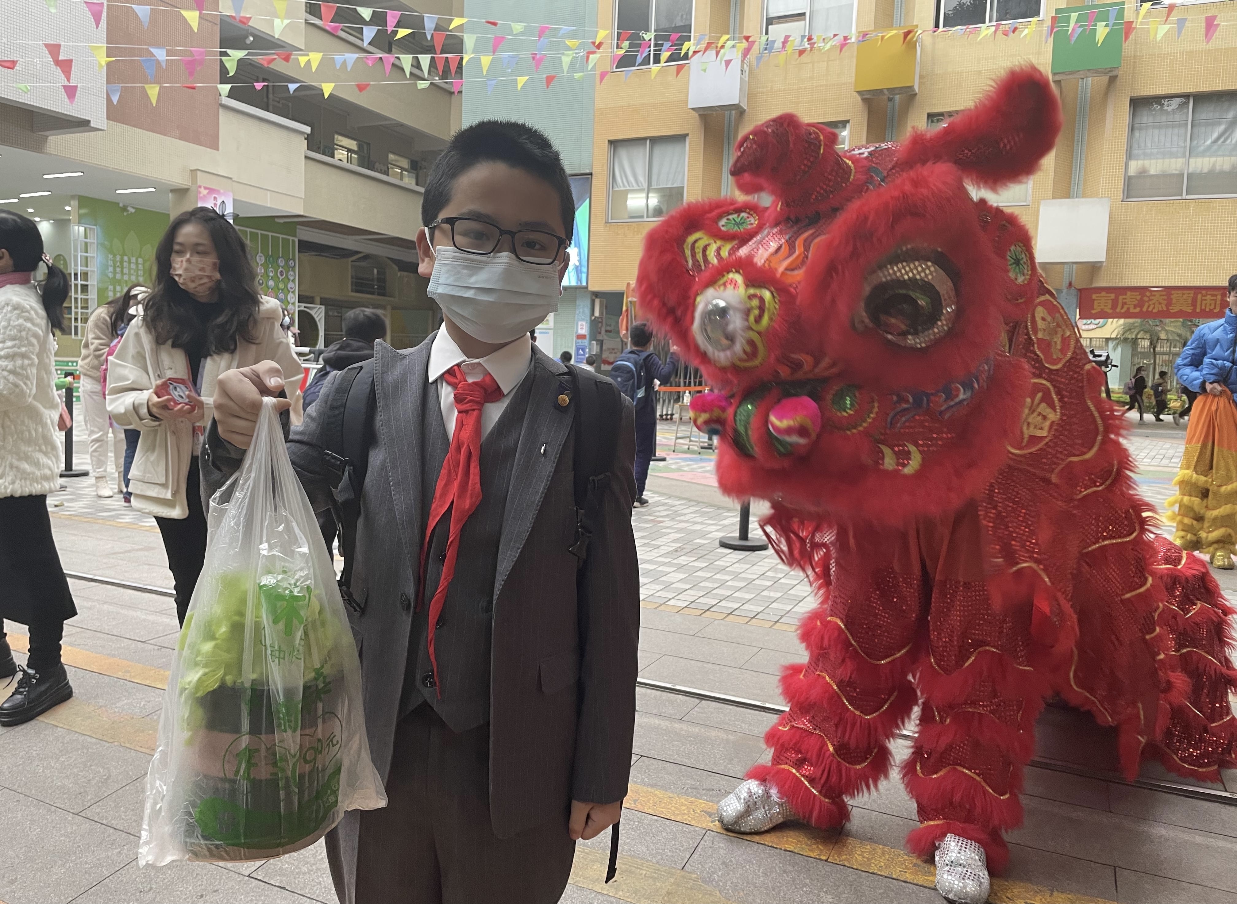 市桥中心小学向每位进校学生派发心愿卡。同时,学生们还带上了生菜和豆苗盆栽,寓意着生生猛猛,茁壮成长。