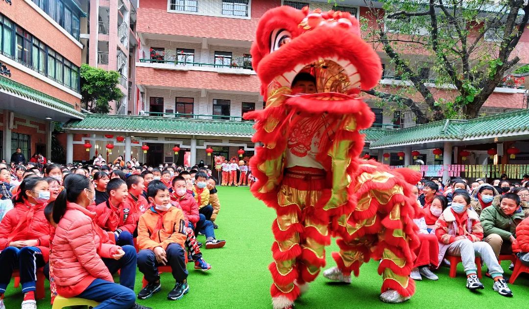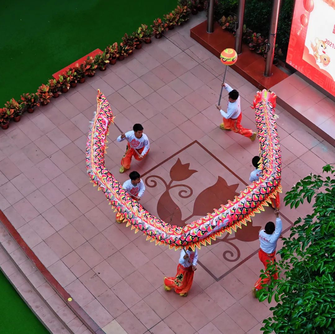 锣鼓齐鸣,一台热闹喜庆的醒狮采青拉开了这场欢乐开学仪式的帷幕;游龙灵动, 一场让全体师生都感受到好运环绕的舞龙表演将现场气氛推向高潮。