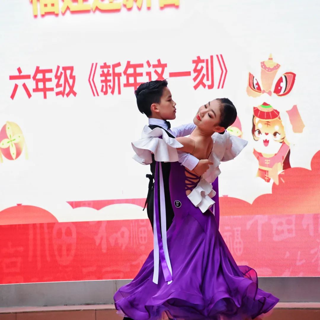 在阵阵掌声与喝彩声中,一群可爱的福娃踏着欢快的脚步走上台来,一首又一首耳熟能详的贺年歌曲陆续在台上唱响:《两只老虎》《新年好》《恭喜恭喜》《喜气洋洋过大年》《生长吧》《新年这一刻》……各年级的“小歌手”在舞台上唱响了自己对老师和同学们的祝福,也让愉悦的心情感染了在场的每一个人。