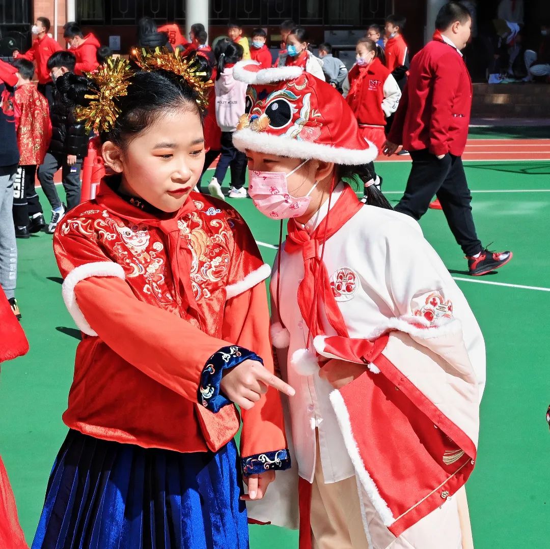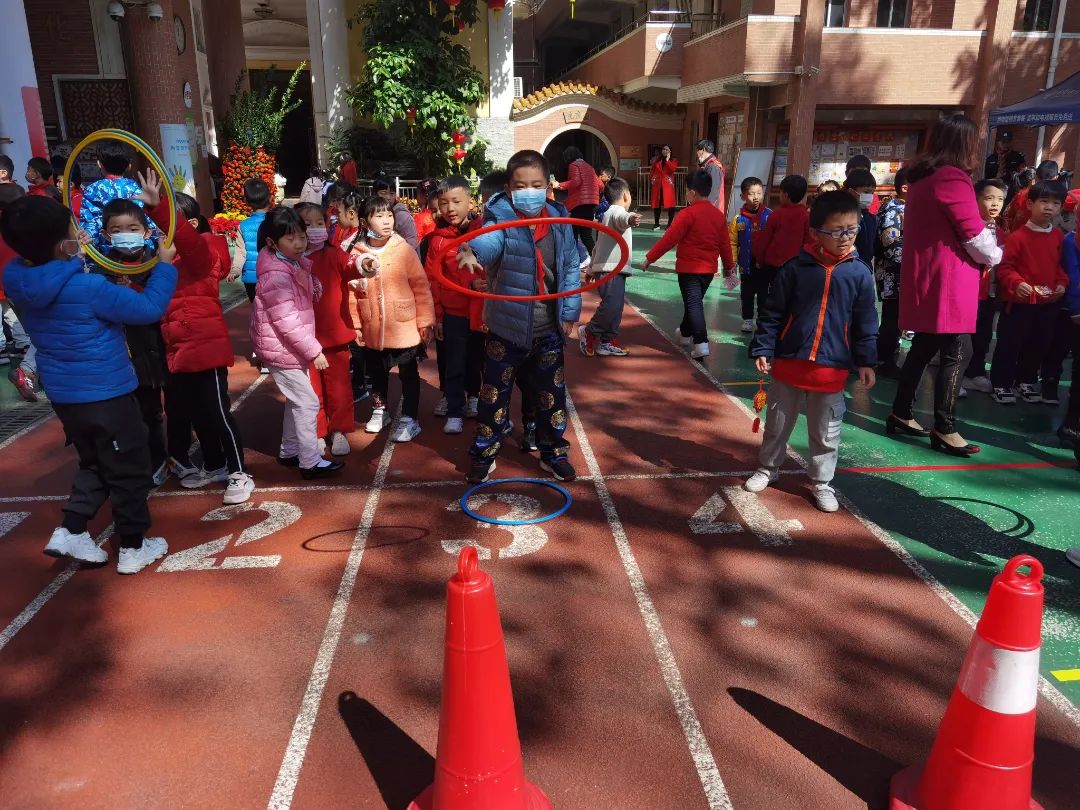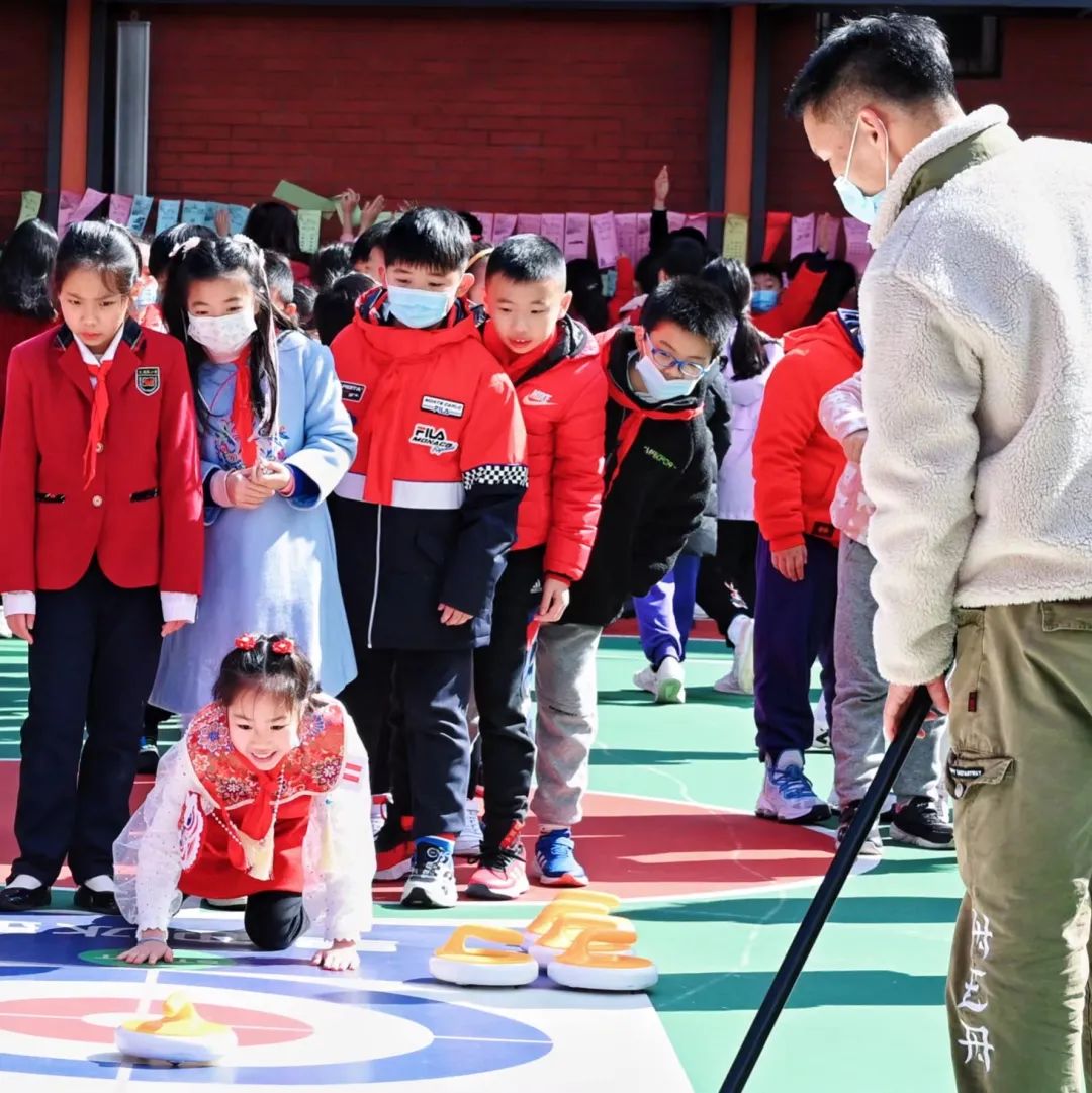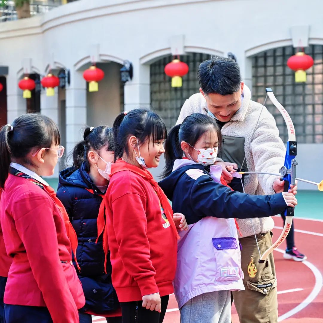 除了精彩的演出,好玩的游园活动也同样是这场开学盛宴的“重头戏”。结合即将到来的元宵佳节,文德路小学在校园的长廊悬挂了许多大红灯笼与元宵灯谜,学校体育科的老师们还结合时下备受关注的的冬奥项目,设置了旱地冰壶、旱地冰球、射箭、障碍闯关等元宵游园项目。