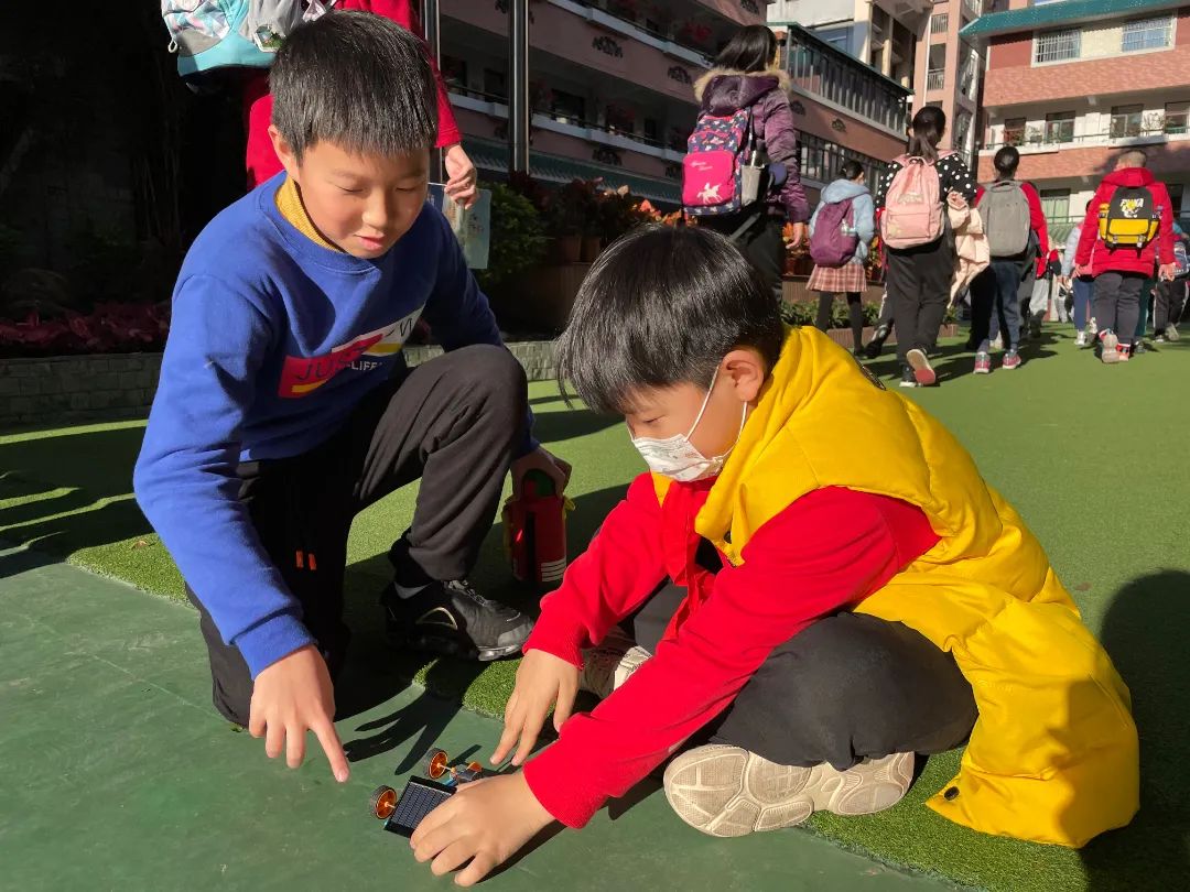 在一片惊呼感叹声中,文德路小学书记吕恒代表学校为每位文德学子送上了一份开学科技创新小礼物:太阳能拼装小模型,并宣布新学期“科技创未来”文德科技小达人大赛”正式启动,“希望每一位同学都积极参与科创活动,在亲手实践制作中感受到科技的力量与美妙。”