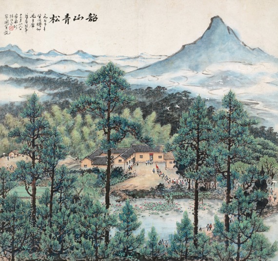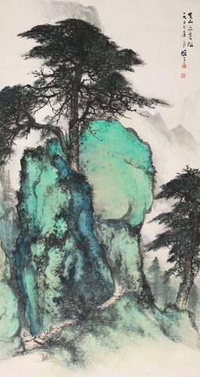 从黎雄才的《一览众山小》《黄山迎客松》等作品可以看到,其笔下的“青绿山水”,气势清旷绝俗,烟云氤氲,瞩目咫尺,意在千里。对此,刘文东表示,黎雄才的青绿山水画呈现出深厚的传统笔墨和色彩功力,显现出深厚的中国画根基,又兼有现代的视觉习惯和科学的色彩处理,这与其恩师高剑父提倡之“折衷中西、融汇古今”的理念分不开。而且他的山水画多与挺拔的青松翠岭互相组合,画中的山水雄健有力、意境深远,各种维度的松树舒展伟岸。在他的画中,高山孕育了青松,青松又让高山有了无限的生机。