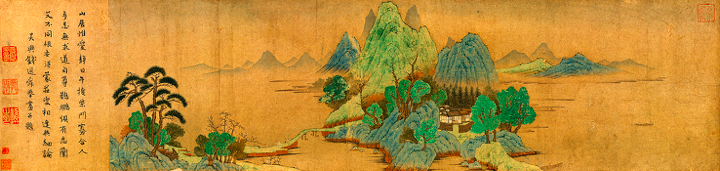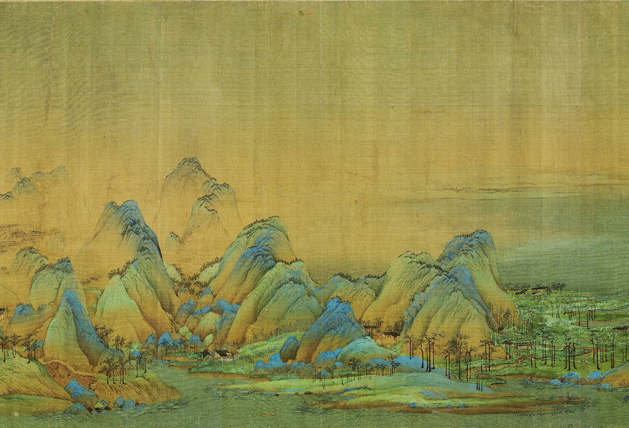 到了北宋徽宗一朝,画坛已经几百年不见成熟的大青绿山水作品了。此时,天才少年王希孟创作了《千里江山图》。以王希孟、赵伯驹、赵伯骕等为代表的宋代青绿山水画,以富丽堂皇的气象、华美秀润的色彩描绘和象征意趣的表达,成为继唐代之后青绿山水画发展史上的一座丰碑。