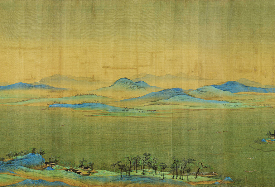 在接近12米的画卷上,千里江山尽情舒展。可以说,《千里江山图》代表了中国古代青绿山水画领域内的最高水准。