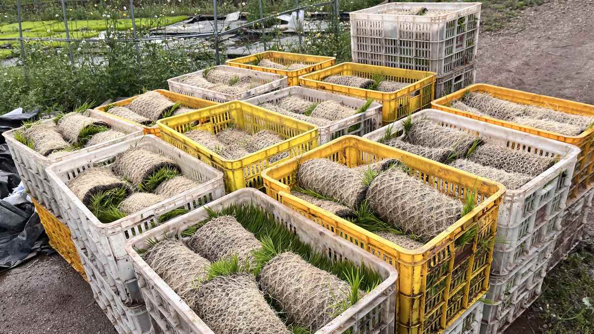 秧苗装筐后,会立即被送往南雄市众民农业发展有限公司种植基地进行插秧,基地内插秧面积有1200亩,届时7台高速插秧机将同时启动,加足马力在田里耕作,一天最高工作量可达300亩。