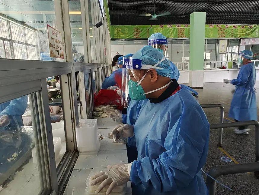 “这样不行,许多同学拿到饭时已经过了饭点。”黎泽英挂念着每一位同学,当晚就召集队员和校方商讨如何优化流程。专人专岗,一人专职打饭,一人专门打菜,连盖饭盒也由专人负责——位于封控区的领才技工学校有了一条流水线。同学们吃上饭的时间也被压缩到了一个半小时之内。