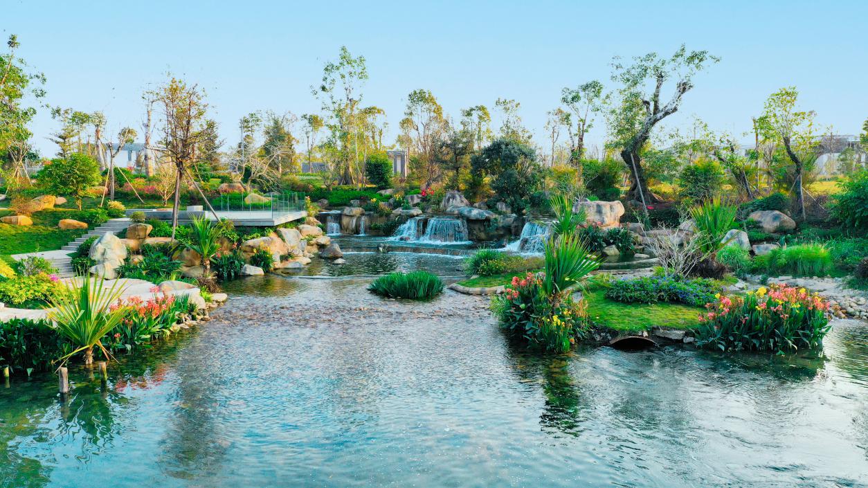晨曦下,微风里,只见花朵随风摇曳,小溪清澈蜿蜒;走进去,亭台楼阁移步换景,花丛水榭错落有致。没想到,在如此美丽的园林生态景观的地下,是一座污水处理工厂。