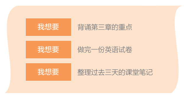 每天睡觉前,让孩子在笔记本上写下第二天最重要的几件事,用“我想要”三个字开头。