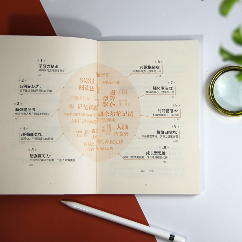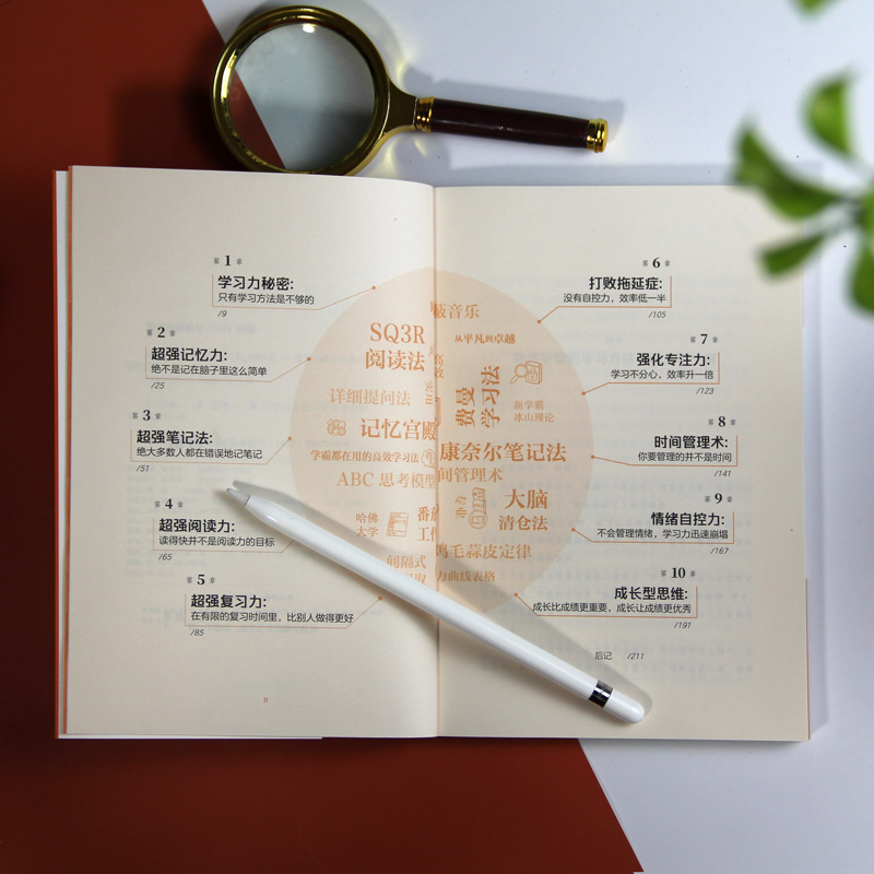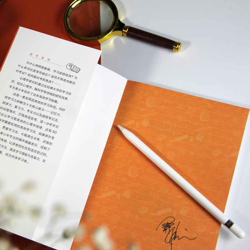 在这本书中,作者从学习力、记忆力、阅读力、复习力、专注力、自控力、笔记力、时间管理力等10大方面入手,总结出50余种学霸都在用的高效学习法——康奈尔笔记法、费曼学习法、大脑清仓法等,还独创了帮助青少年专注的噪声掩蔽音乐、精力管理表格等,激发学习潜能与自驱力,发现学习的乐趣,精准训练大脑。