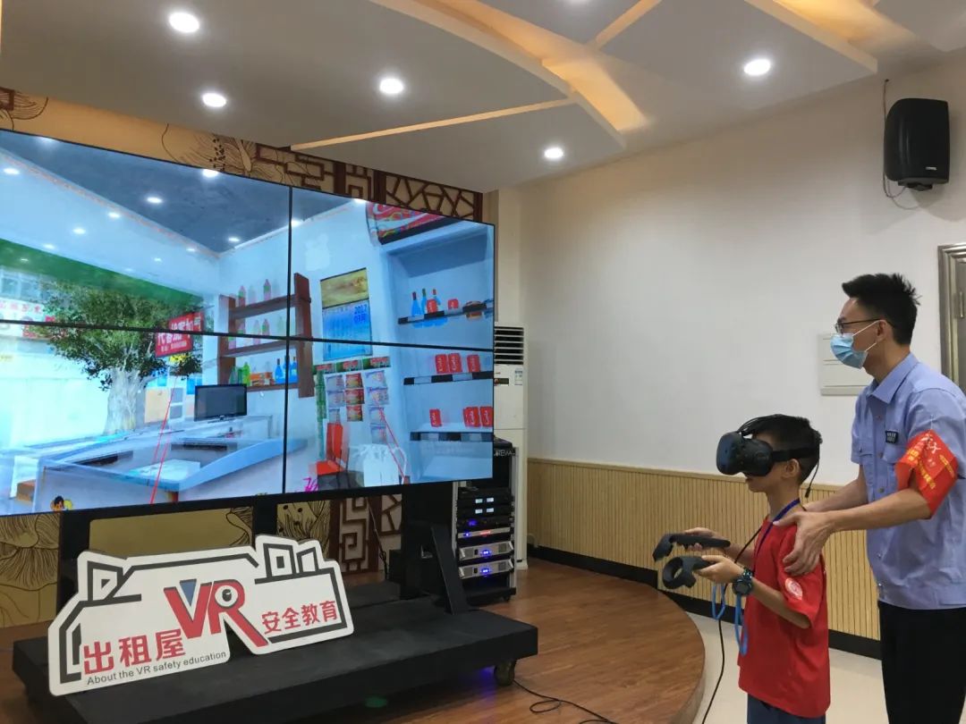 课堂上,“小候鸟”在网格员的帮助下,戴上VR眼镜亲身感受出租屋入口、楼道和住宅、商铺等模拟场景,通过每个场景内设置的同步语音,“小候鸟”能真实“接触”出租屋内电动自行车违规停放充电、室内违规安装燃气热水器、电线和电器乱拉乱接等各类安全隐患问题。随后,“小候鸟”通过场景安全隐患排查小游戏化身成网格员,认真排查每个场景存在的安全隐患问题,从排查隐患小游戏中分辨隐患情况,从而获取更多的安全知识。