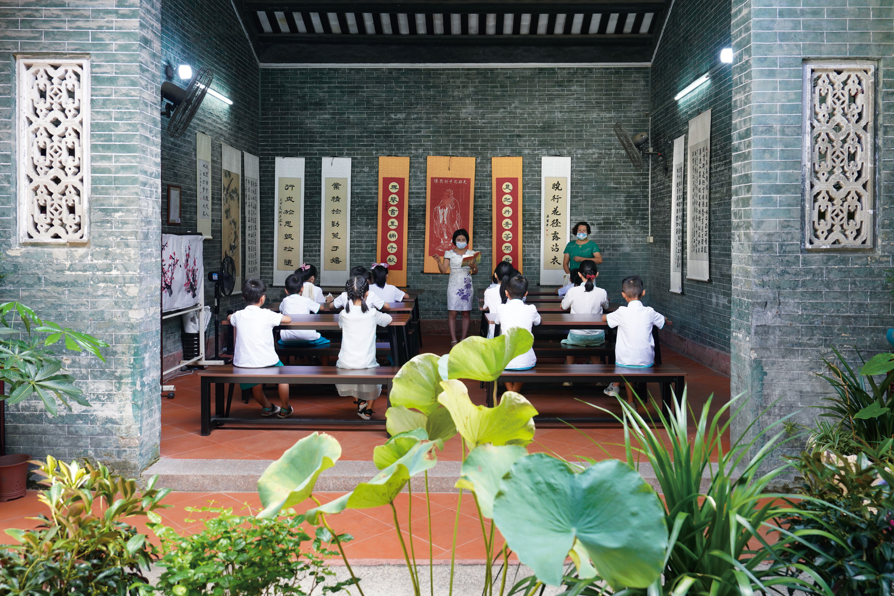 “弟子规,圣人训。首孝悌,次谨信。泛爱众,而亲仁。有余力,则学文……”三字一顿,两句一韵,孩子们响亮的朗诵,家塾的一砖一瓦,内墙上挂着的书法作品,弥漫着富有历史韵味的古典文化气息。