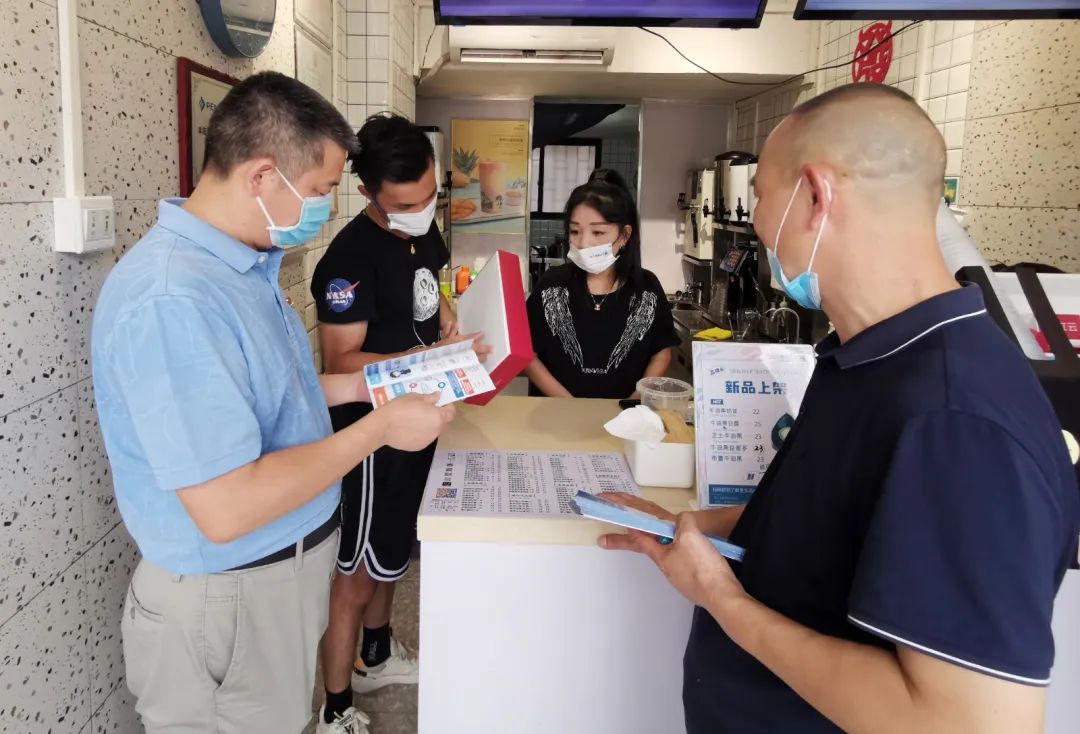 长洲街道武装部部长张述伟走访沿街商铺,向居民耐心讲解住户调查大样本轮换工作的重要性。