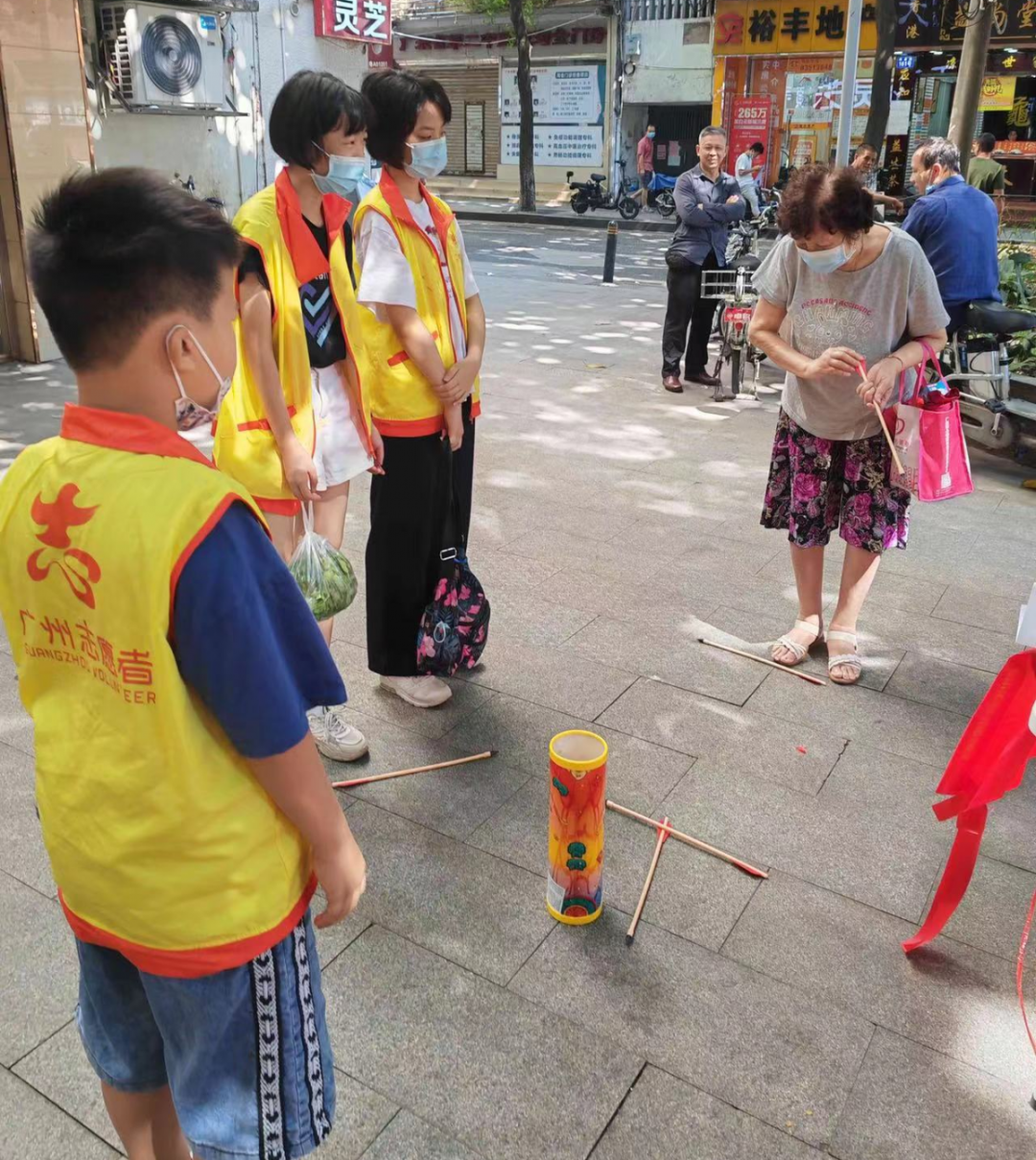 现场有奖竞答、垃圾分类小游戏等有趣的互动方式吸引了社区居民的积极参与,活动气氛热烈。青少年志愿者们热情高涨,前往淘金路街巷、桂花园小广场周边游走宣传公益劝募活动及“定时定点”生活垃圾投放模式等内容,呼吁社区居民积极参与社区治理、关注社区困境人员,并邀请居民现场体验游戏摊位。
