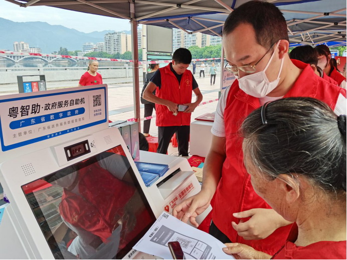 据悉,“粤智助”政府服务自助机下乡,是广东省“数字政府”改革建设的一项重点工程,自助机由服务平台触摸屏和打印机组成。自助机已整合涵盖人社、税务、公安、民政、卫健等10大类政务服务事项。目前,乐昌市已完成部署“粤智助”政府服务自助机214台,实现全市19个镇(街、办)公共服务中心和195个行政村全覆盖;同时,每个自助机网点均设置一名帮办代办服务金融特派员,引导群众办事服务。