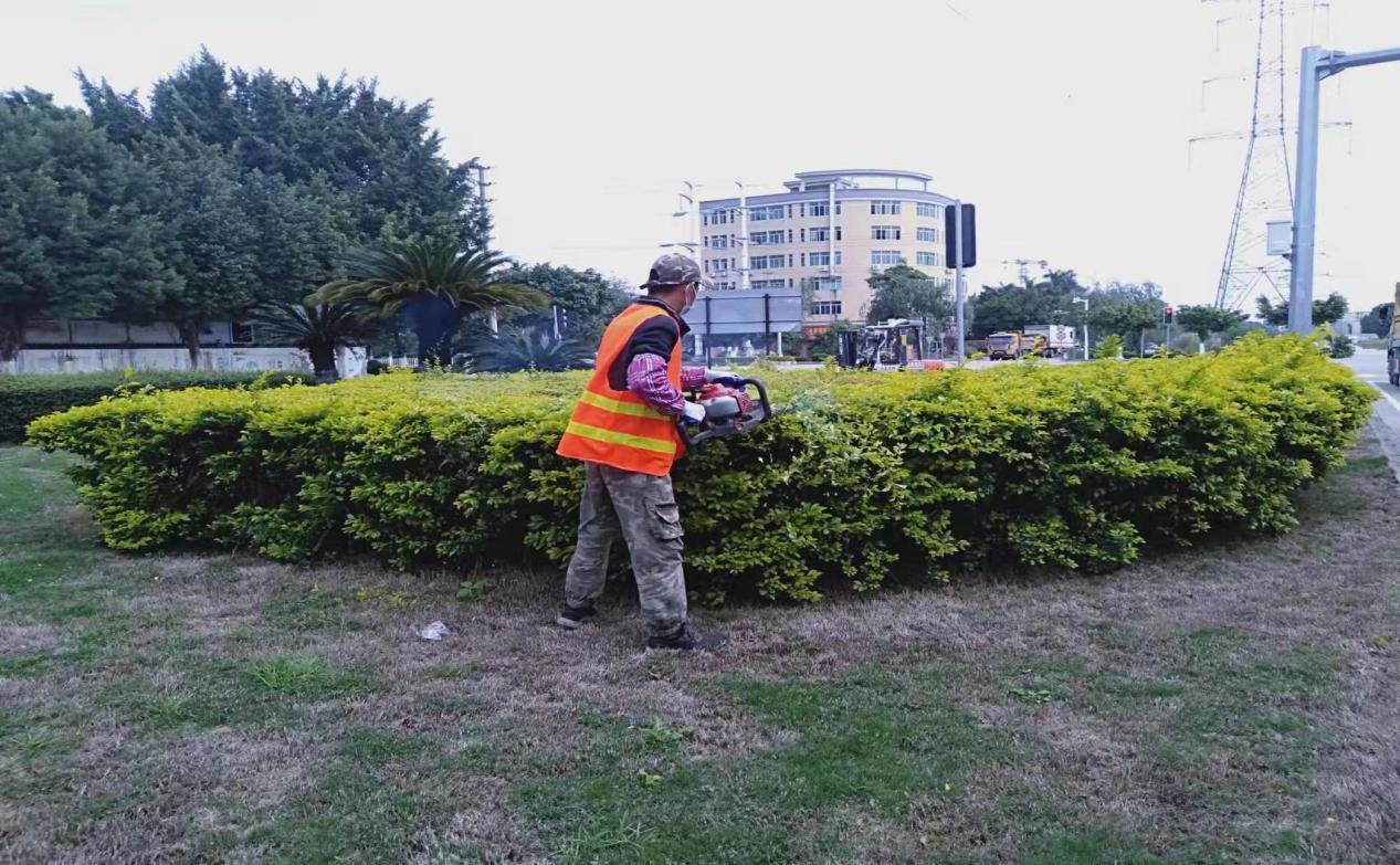 近日,在花都区迎宾大道、公益路、三东大道等城区主干道绿化带上随处可见绿化工人的身影,他们正拿着电锯给绿篱“理发”,一片片绿篱在经过修理后更显整齐清爽、精神十足。