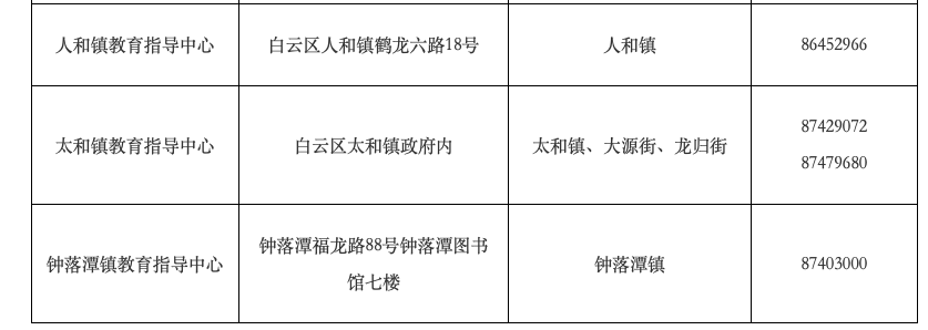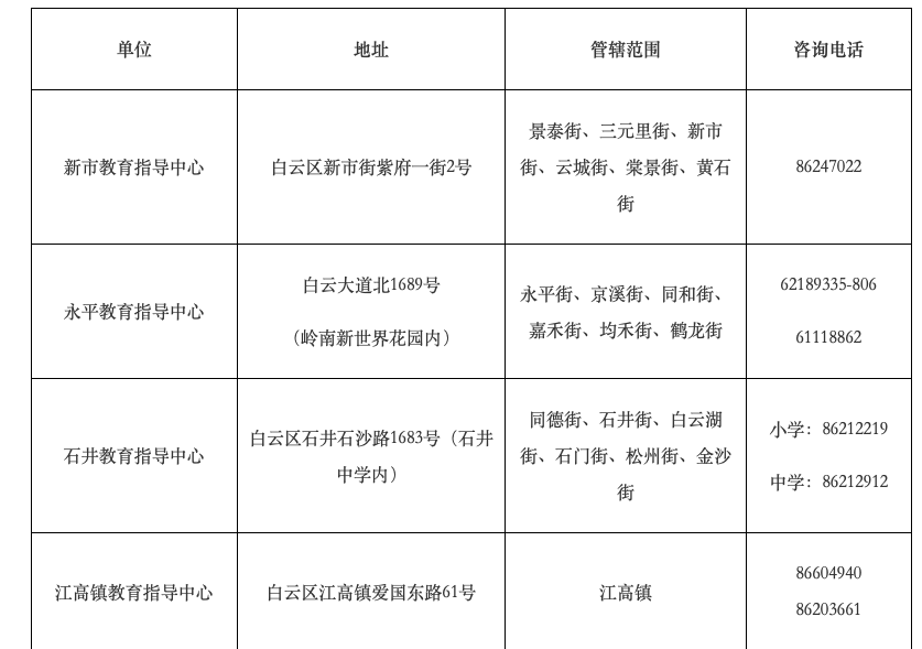 广州市白云区永泰小学、广州市白云区华师附中实验小学、广州市白云区京溪小学、广州市白云区云英实验学校(小学部)、广州市白云区同和小学、广州市白云区握山小学、广州市白云区广大附中实验小学(含非起始年级)、广州市培英中学初中部。