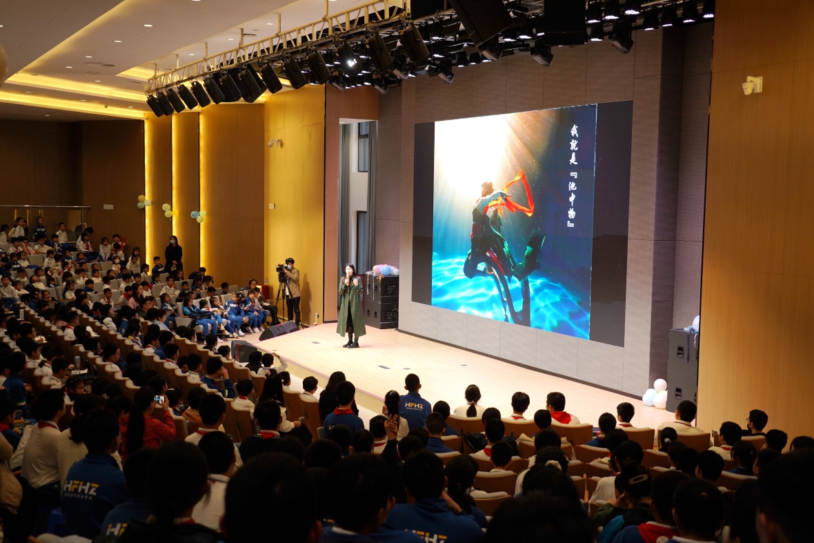 2月8日下午,华附2008届校友何灏浩来到广州海珠区华海双语学校,在演艺厅给全体师生做题为“在学习中激发兴趣,在学习中铸就品行”的讲座。