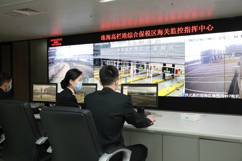 高栏海关关员在珠海高栏港综合保税区监控指挥中心开展信息化系统测试