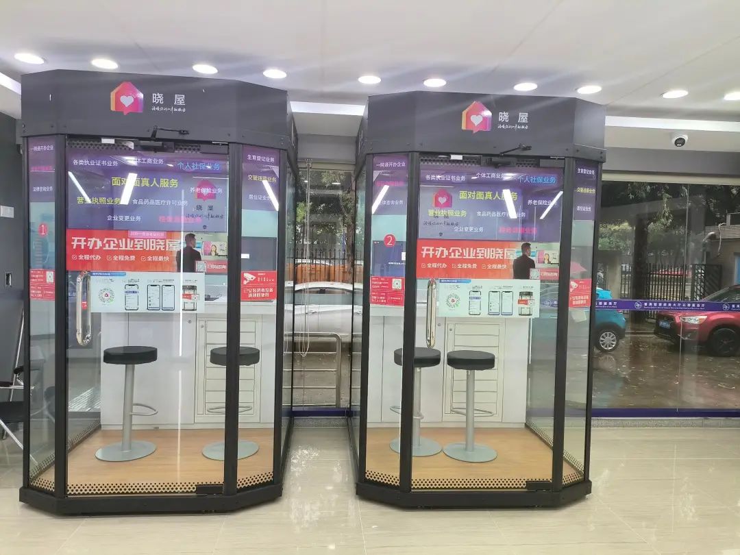 现场有两台5G+VR“政务晓屋”,可以与市场监管、社保、税务等各部门实时连线互动,实现不同政务事项的“远程联办”,可办本地事项3553项。