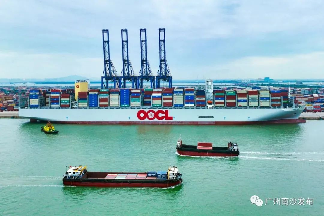 3月24日凌晨1点,随着一声鸣笛响起,一艘“海上巨无霸”在拖轮的密切配合下,缓缓停泊在广州港南沙二期集装箱码头。这艘最大载箱量达24188标准箱的“东方西班牙”轮,甲板面积相当于3.5个标准足球场,刷新了广州港南沙港区超大型船舶挂靠的历史纪录。