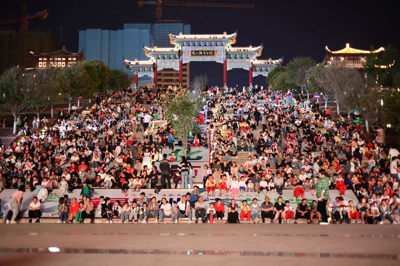 同心城市公园台阶上坐满了市民。七星关区委宣传部供图