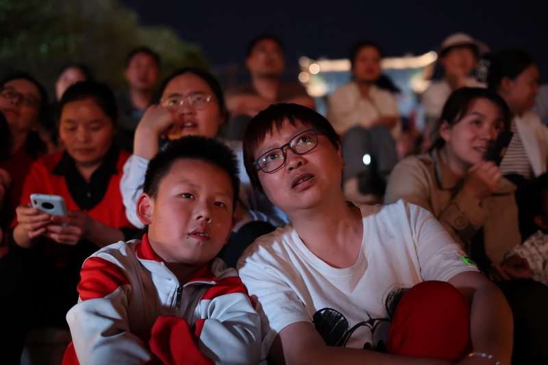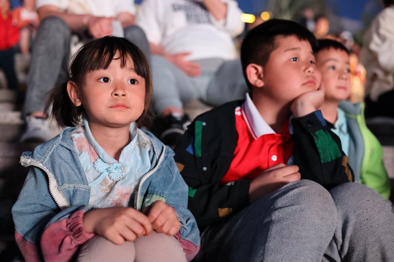 “大家聚在一起看露天电影真开心!就像一场邻里聚会。”“把平时冷清的同心公园利用起来,提升市民的幸福感!”在能容纳一万人的广场台阶上,带着孩子的家长、邀上好友的青年,还有携手伴侣的老人,构成一幅和谐、温馨的城市生活景象。