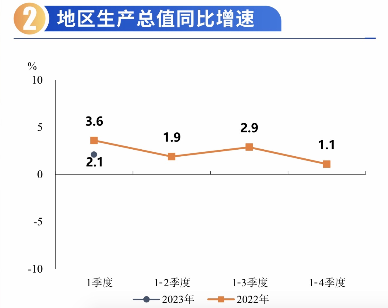 近日,广州荔湾区公布2023年一季度(1-3月)经济运行情况。根据广州市地区生产总值统一核算结果,2023年1-3月荔湾区地区生产总值286.28亿元,同比增长2.1%。其中,第一产业增加值为0.89亿元,同比下降1.1%;第二产业增加值为87.73亿元,同比增长1.4%;第三产业增加值为197.66亿元,同比增长2.4%。