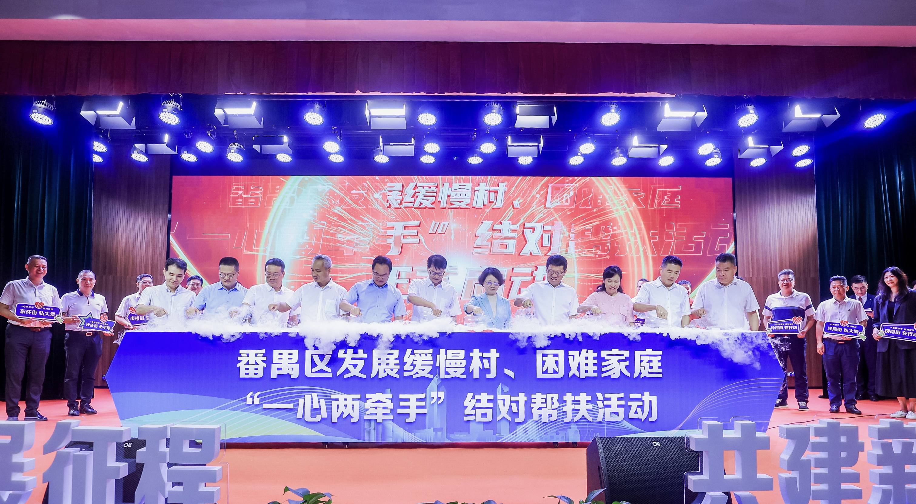 活动上,2023年番禺区发展缓慢村、困难家庭“一心两牵手”结对帮扶活动举行了启动仪式。据了解,为实现区内协同发展,助力实现乡村振兴、共同富裕,本次结对帮扶活动以镇街为主体、职能部门协同,积极发动辖区企事业单位、社会组织、爱心企业、热心人士等力量积极参与结对帮扶。