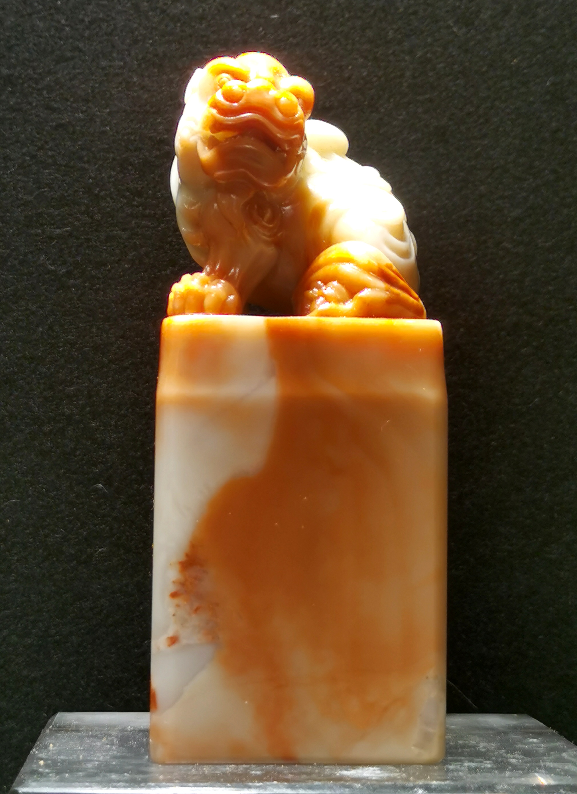 寿山石是我国著名的国石之一,其石质晶莹、脂润、色彩斑斓,色泽浑然天成而深受国内外人士喜爱。寿山石中的名贵品种田黄产于福建寿山村田中,被冠以福、寿、田吉祥称谓,因而在清代深得宫廷宠爱。田黄产量极其稀少,古称“一两田黄三两金”。